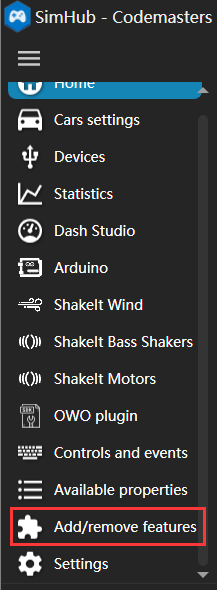 2.打开或重启 Simhub 点击 "Add/remove features"